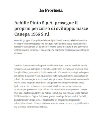 La Provincia di Como - Comunicato stampa 10.02.2026